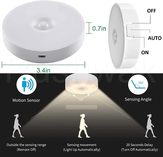 2pcs Motion Sensor Light for Home with USB Charging Wireless Self Adhesive LED Nightlight