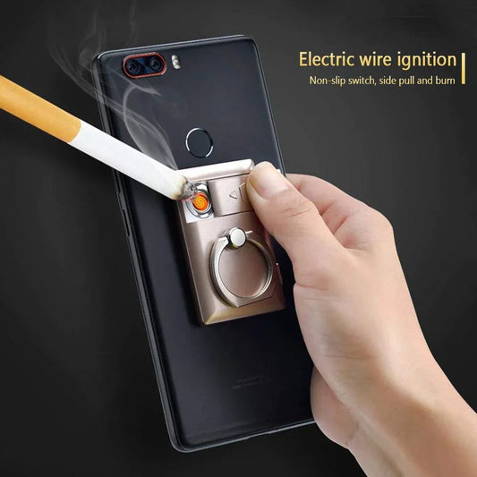 2 IN 1 Mobile Phone Holder with Ring Usb Electronic Lighter